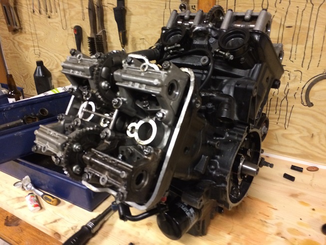 Tjoho motor ihop, fullpreppad motor vfr750 -86 nyrenoverad. Återstår synka kammarna blir nog nästa veckas projekt...