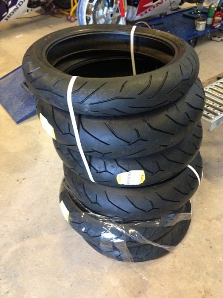 Ah äntligen däckshögen hemma, nu är det bara att få på dom utan att skada fälgarna