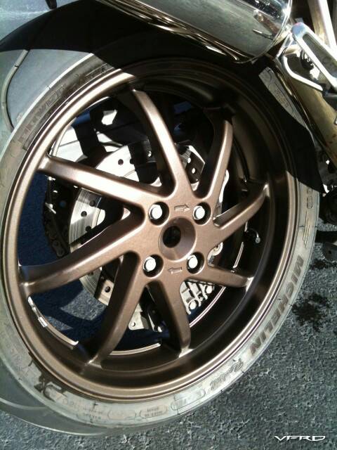 Ja jag tror grått hade blivit fint på din, skall lacka min framfälg snart tänkte jag då endast bakfälgen är guldfärgad nu.