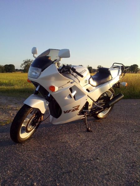 Nu fick jag dock möjlighet att köpa en första generations VFR750, alltså en -86a, och tog tack och lov den chansen. Så, efter alla dessa år har jag nu blivit en "återfallsförare". Första turerna kändes i höfterna vill jag lova, men det börjar bli bättre, och förutom märket så finns där ingenting att jämföra med min gamla CB400, och det är endast positivt med det :-)