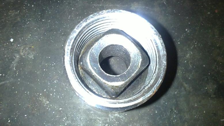 Jag började tillverkningen av adaptern med att gänga i proppen i muffen och sen borra ett 10mm hål i centrum. Tanken med denna konsturktion är att ge lite extra staga och styrning till bulten.