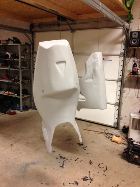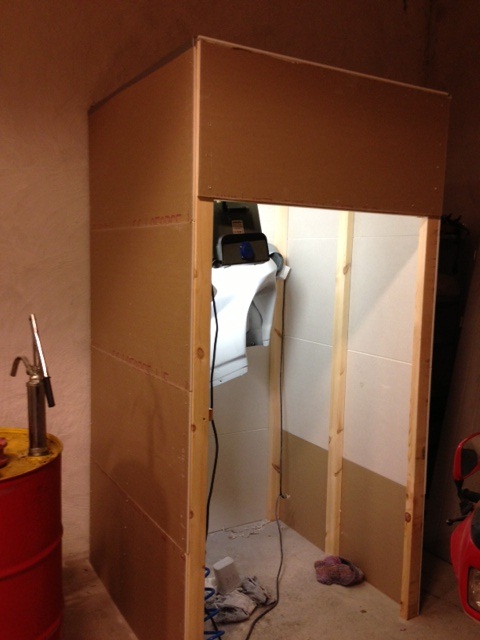 Gick inte riktigt som jag tänkt mig, snöstorm ute ,,,,och fick börja med att bygga en lackbox svårt att stå ute i snöglopp att lacka den blev 1,2*1,2 m och riktigt bra, fickhjälp av frugan att hålla i bitarna och skruva ihop den, så nu är kåpdelarna sprutspacklade och väntar ivrigt på att det skall härda, dröjer nog till helgen innan jag har tid att fortsätta, då är det vattenslipning och finish innan grundfärgen. forsättning följer.......w