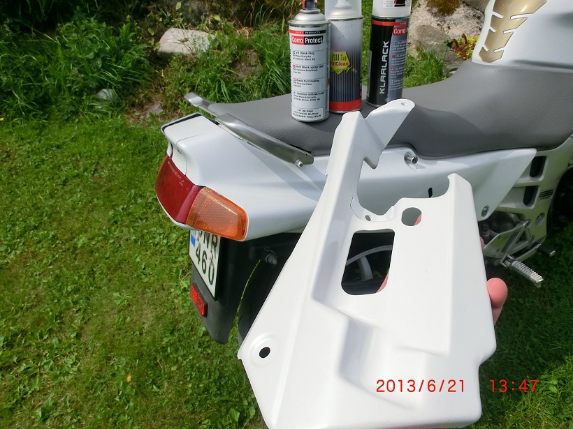 Köpte den på Mekonomen färdig i sprayburk och kostade 250 kr, vit och klarlack "corroprotect"var vanlig från OK-Q8, och är riktigt bra att spraya med (lackade även framfälgen med den vita)