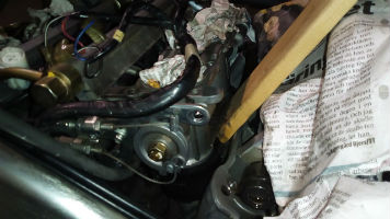 När du väl river kommer du att upptäcka att det är rätt svår att få av slangarna även om dom är mjuka. Anledningen är att värmen och glykolen gör att dom liksom limmar fast lite grann. Men det finns ett enkelt trick. Ta en polygrip och ta tag om slangen där den sitter på anslutningen och vrid lite lätt, då släpper den direkt.