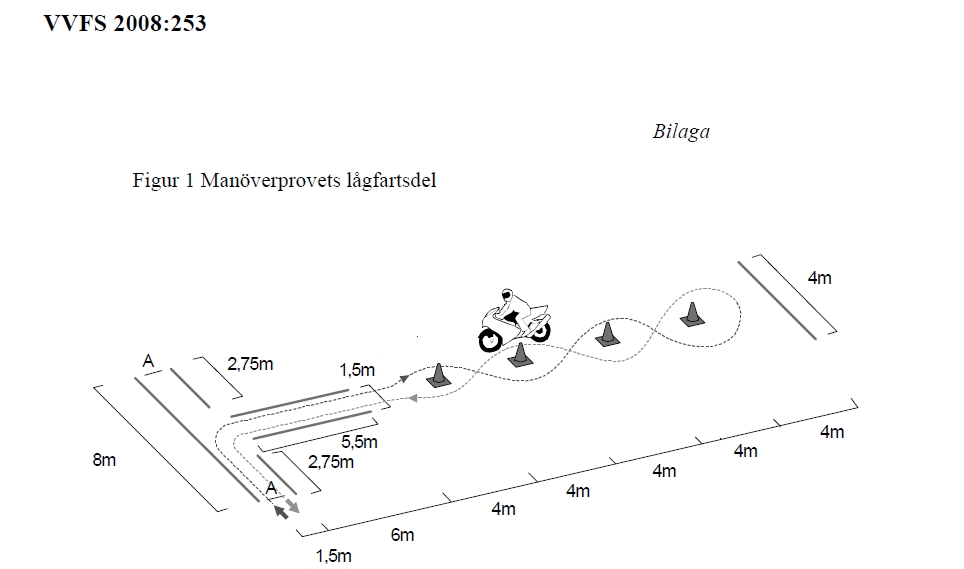 (I den här övningen har man en begränsningslinje 4m efter den sista konen - men ingen som helst begränsning i sidled (mer än att asfalten ev. tar slut.))