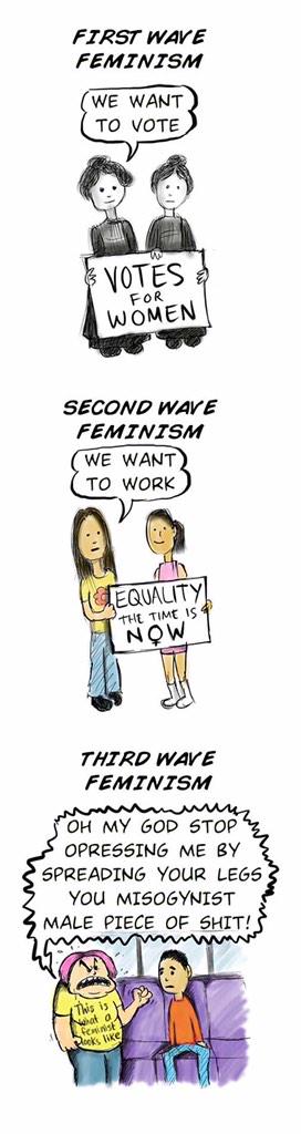 Begreppet "feminism" är ett ganska så vagt begrepp att försöka att beskriva, närmaste man kommer med dagens "feminism" är att vara en totalt "politiskt korrekt" toffelhjälte gentemot kvinnor i sin gemenskap med dom. Då tycker kvinnor och andra f"""""r att man är en "feminist" och skryter med det. Det är mycket poppis att svänga sig med det begreppet och "stigmatiseringen/kastreringen" av det manliga könet i den politiska och "kulturella" världen har jag märkt.