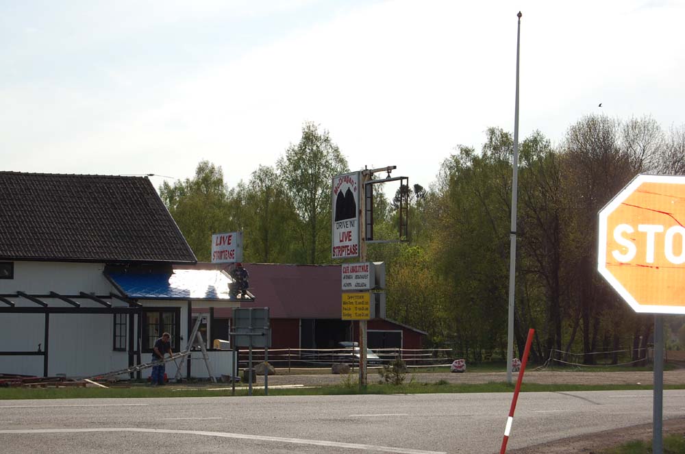Jag åker förbi där på väg till jobbet. Notera de ifyllda "brösten" på skylten - han hade McDonald's-bågar först, med de protesterade så han fick fylla i dem.
